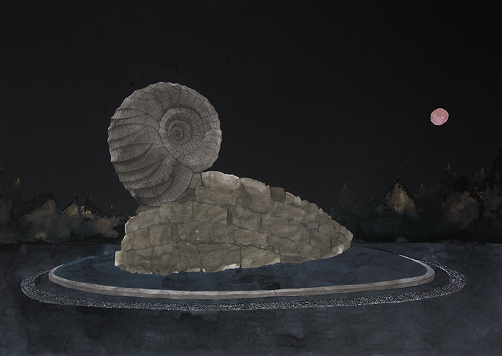 OMINÖSE, 2015 70 x 50 CM pencil, acrylic ink, gouache, metalic foil, glitter on cardboard